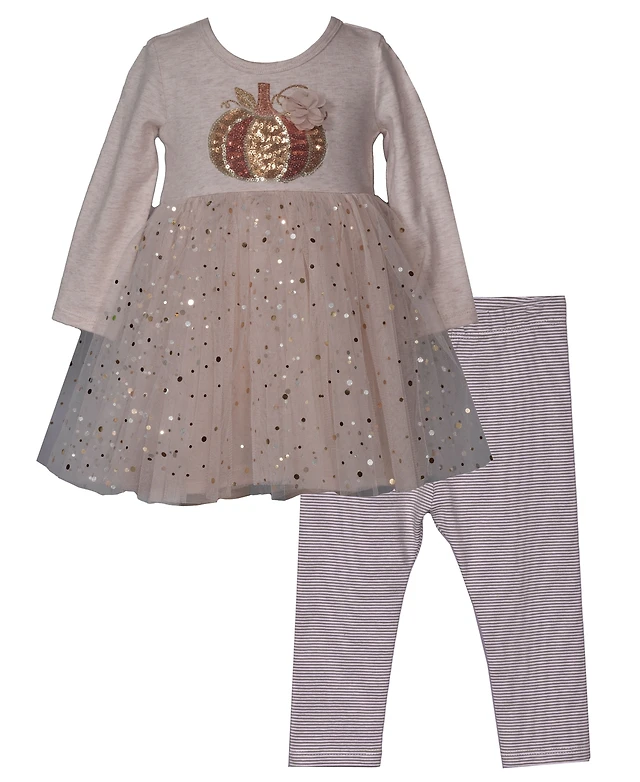 Bonnie Baby Girls 2-Piece Top and leggings Sequin Pumpkin Set
