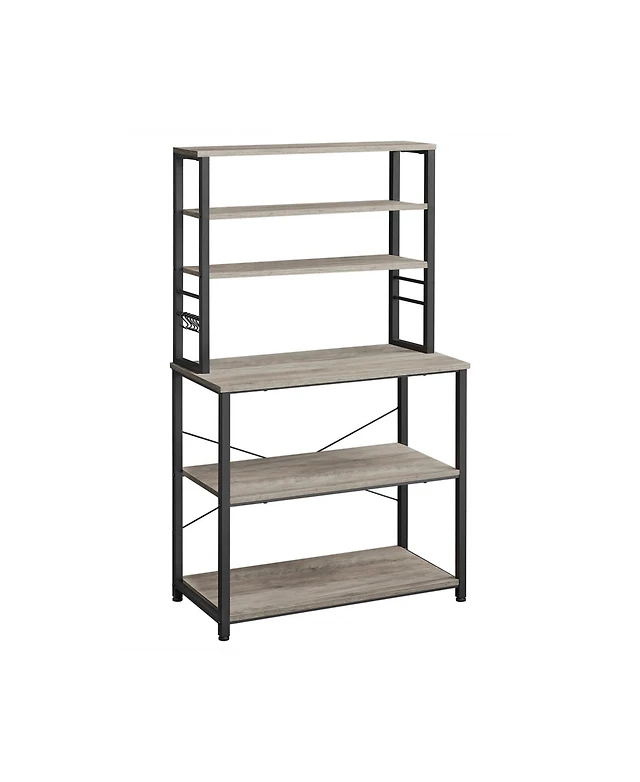 Kitstorack 17.4"- 27.4" Expandable Microwave Stand, 3-Tier Heavy Duty Adjustable Height Microwave Oven Rack with 9 Hooks and Cutting Board Holder, Cou