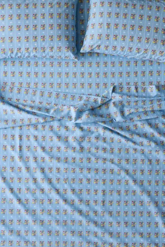 Bright Posies & Stripe Brushed Cotton Sheet Set