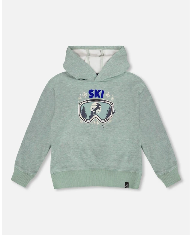 Deux par Boy Super Soft Hooded Brushed Jersey Sweatshirt with Graphic Print Green