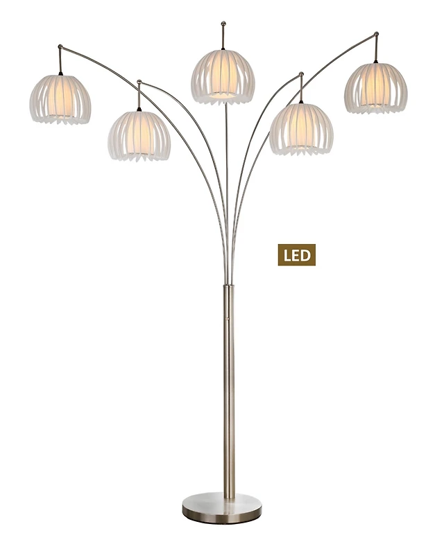 Artiva Usa Zucca 89" 5-Arch Brushed Steel Led Floor Lamp with Dimmer