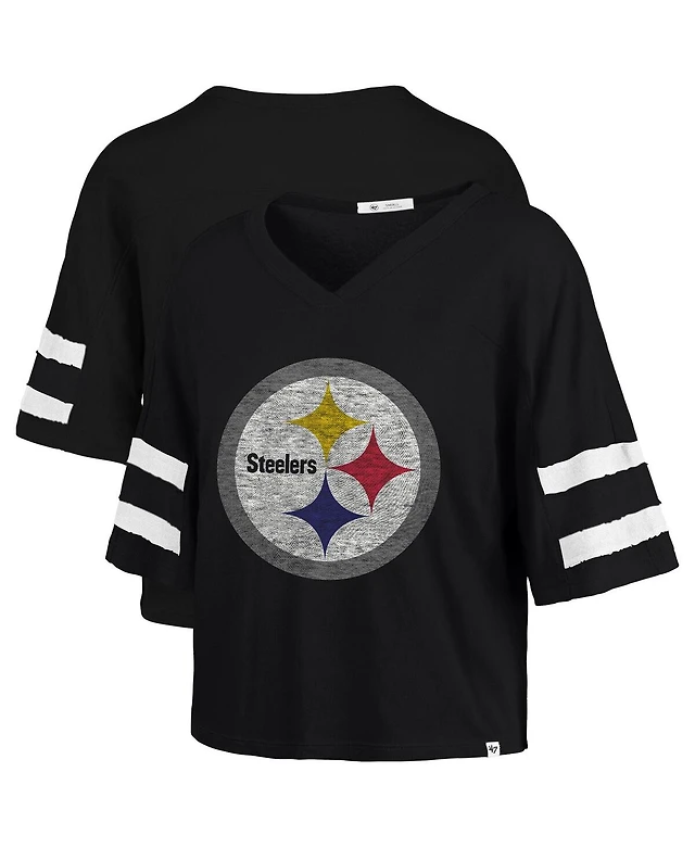 Gameday Couture Women's Black Pittsburgh Steelers Rhinestone Star Sleeve Settle the Score Tri-Blend Pullover