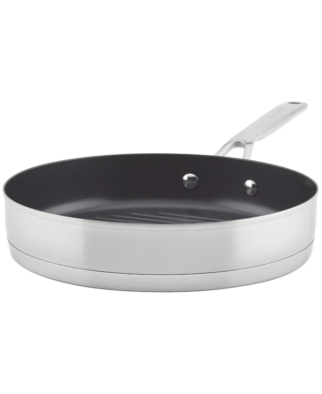 KitchenAid 3-Ply Base Stainless Steel Nonstick Induction Stovetop Grill Pan, 10.25", Brushed Stainless Steel