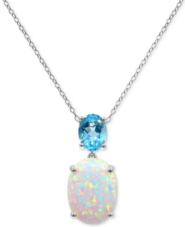 Lab-Grown Opal (4-1/4 ct. t.w.) & Sky Blue Topaz (2-3/4 ct. t.w.) Drop Earrings in Sterling Silver