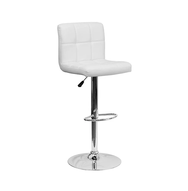 Quilted Vinyl Swivel Adjustable Height Barstool With Chrome Base
