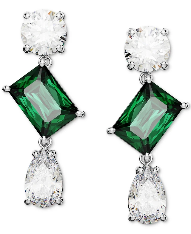 Swarovski Silver-Tone Mesmera Green Stone Drop Earrings