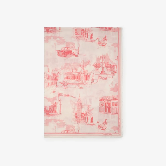 London Landmarks Wool Silk Scarf in Custard beige | Burberry® Official