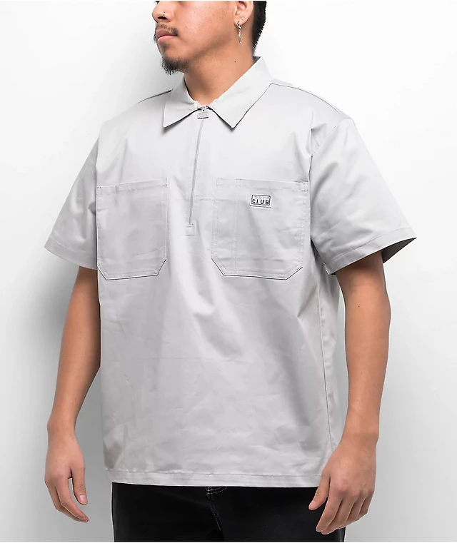 Pro Club Heavyweight Silver Half Zip Work Shirt