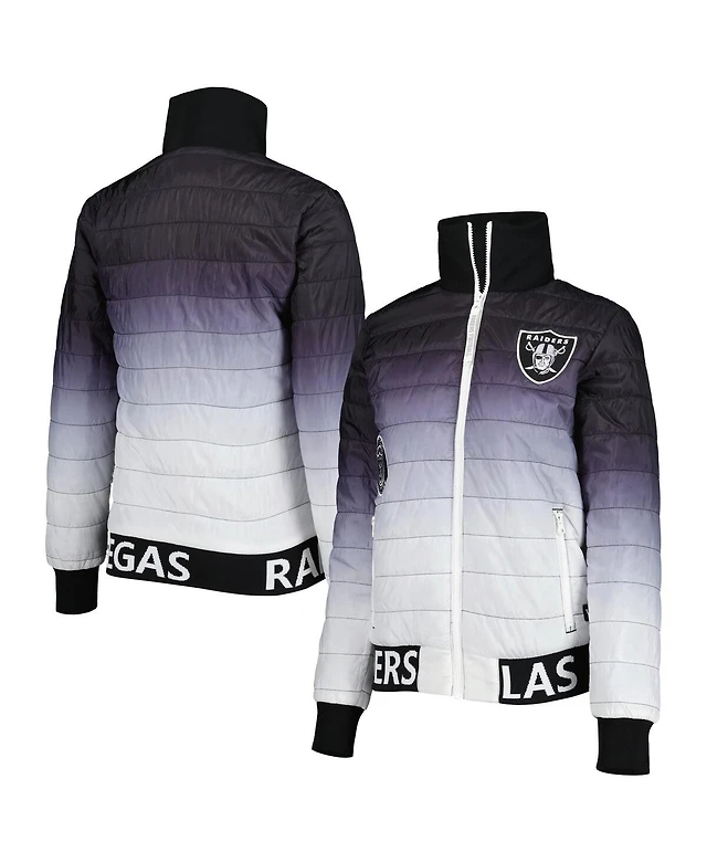 Women's The Wild Collective Black, Silver Las Vegas Raiders Color Block Full-Zip Puffer Jacket