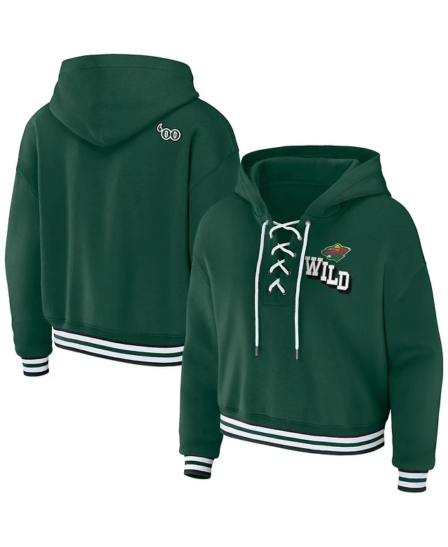 Women's Wear by Erin Andrews Green Minnesota Wild Lace-Up Pullover Hoodie