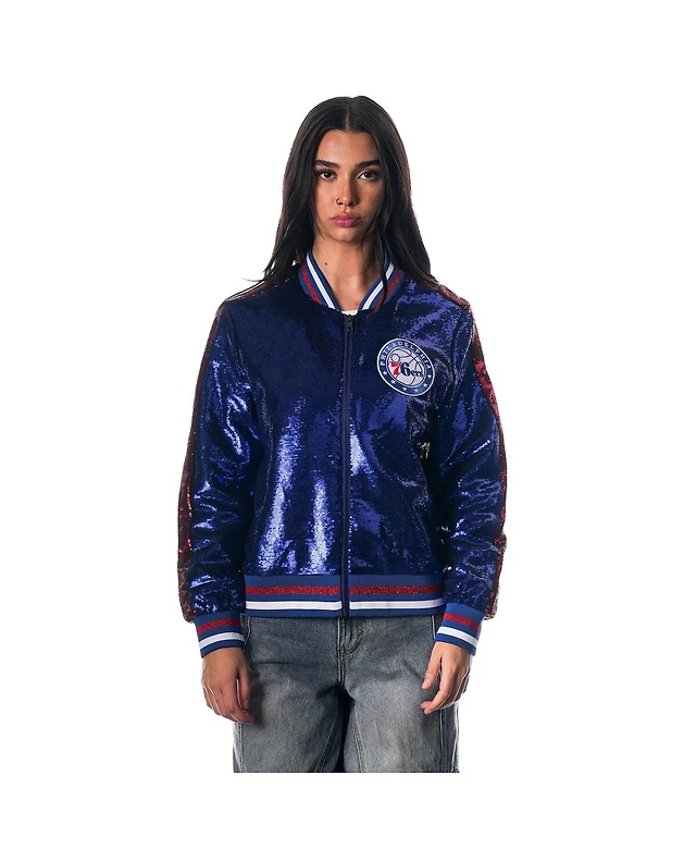 The Wild Collective Women's Royal Philadelphia 76ers Sequin Bomber Full-Zip Jacket