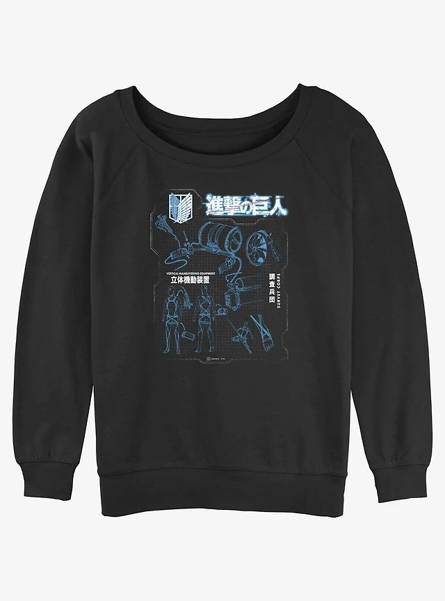 Attack on Titan Maneuver Gear Blueprint Girls Slouchy Sweatshirt