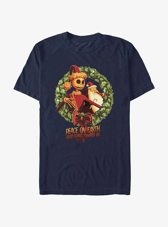 Disney The Nightmare Before Christmas Peace On Earth Jack & Santa Wreath T-Shirt
