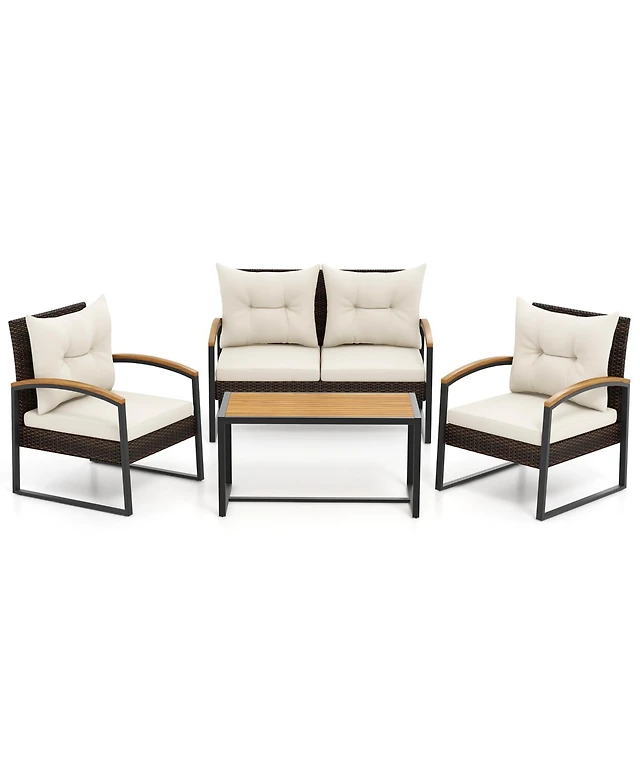 Gymax 5 Pcs Rattan Outdoor Patio Conversation Set w/ Coffee Table & Ottomans