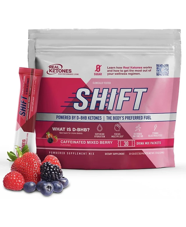 Real Ketones Shift Mixed Berry Exogenous D Bhb + Keto Electrolyte Powder, 30 Drink Mix Packets for Rapid Ketosis (Caffeinated)