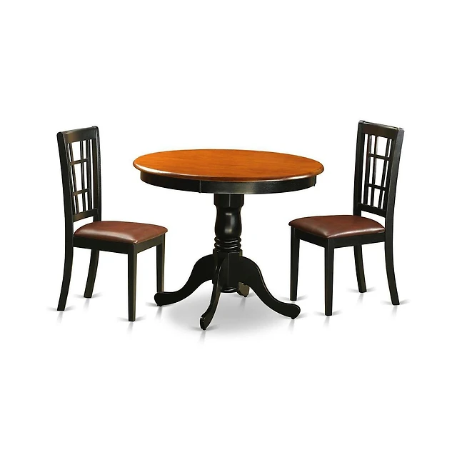 East West Furniture 3 Piece Wood Dining Table Set Contains 1 Drop Leaves Wooden Table and 2 Mahogany Wooden Chairs with Panel Back - Mahogany Finish