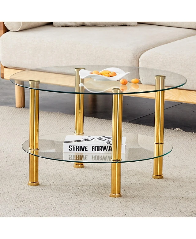 Gouun Led-Lit Tempered Glass 2-Tier Coffee Table with Metal Frame