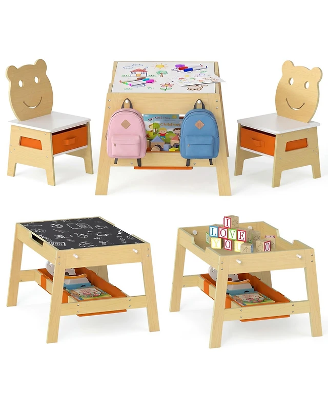 4-in-1 Kids Table & Chair Set Toddler Wooden Activity Table with Side Bookshelves
