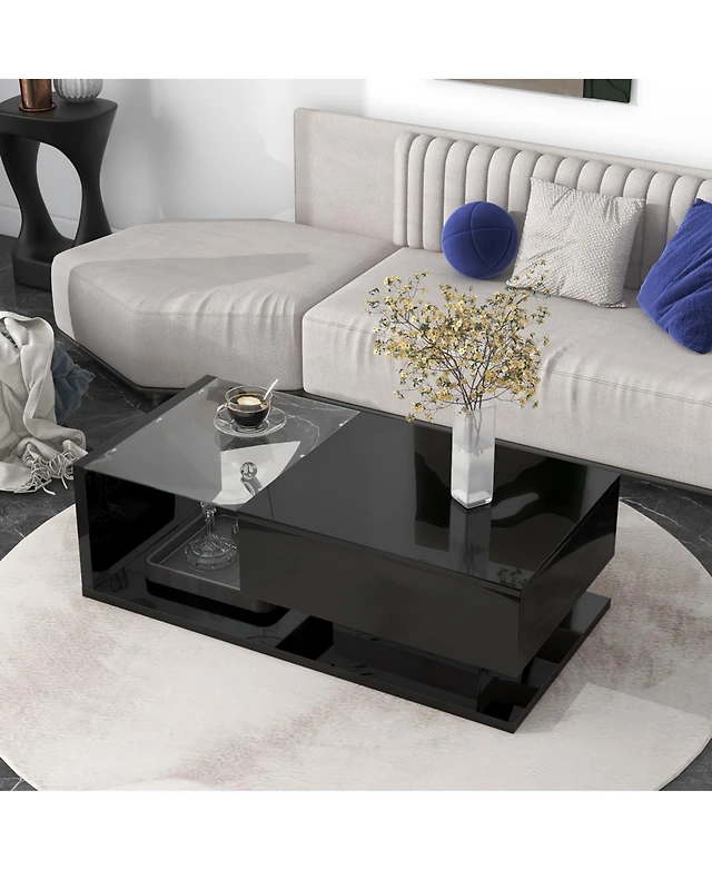 Streamdale Furniture Modern Black Ribbed Coffee Table