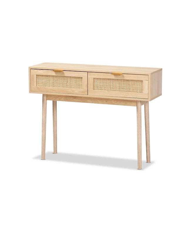 Baxton Studio Maclean Mid-Century Modern Rattan and Natural Brown Finished Wood 1-Door End Table