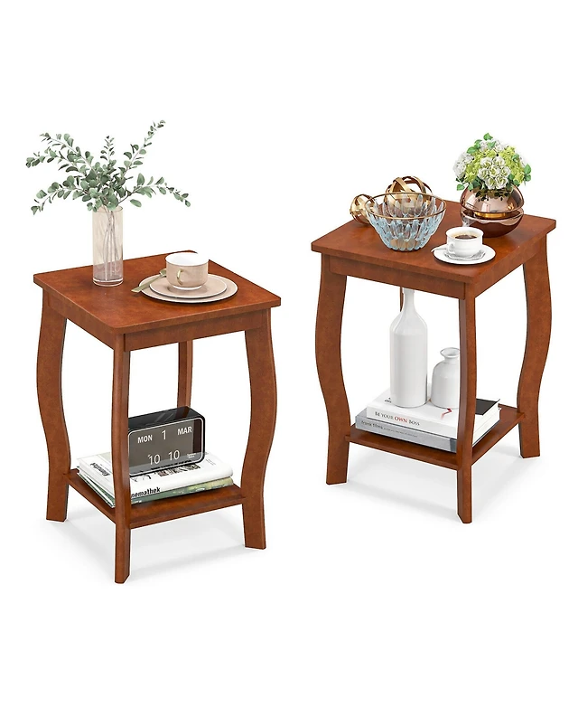 Tribesigns End Table Set of 2, Narrow with 3 Storage Shelves, Wooden Nightstand Metal Frame, Small Sofa Side