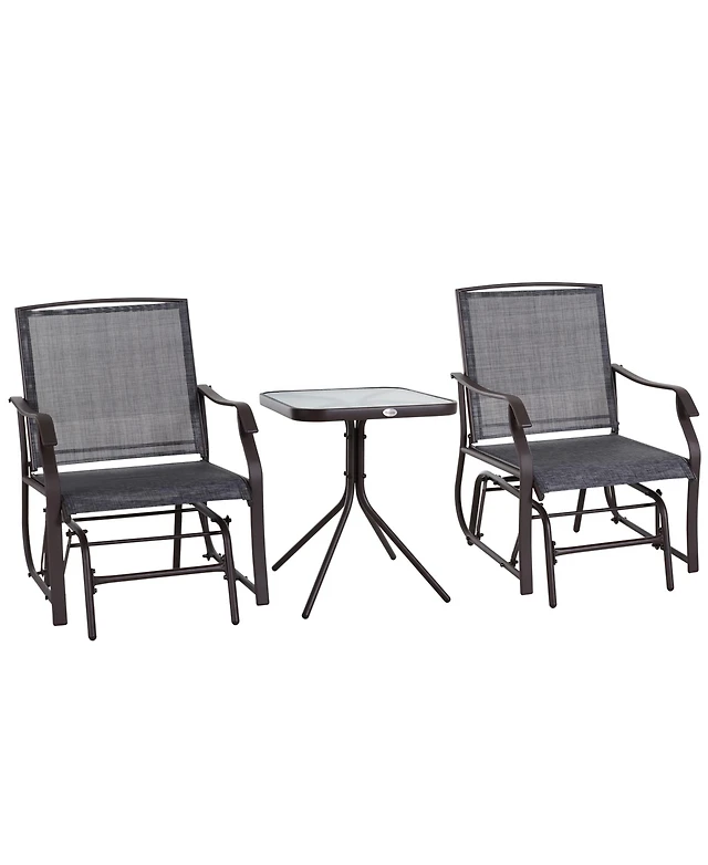 Flynama Outdoor Glider Chairs with Coffee Table, Patio 2-Seat Rocking Chair Swing with Breathable Sling for Backyard, Garden and Porch, Black