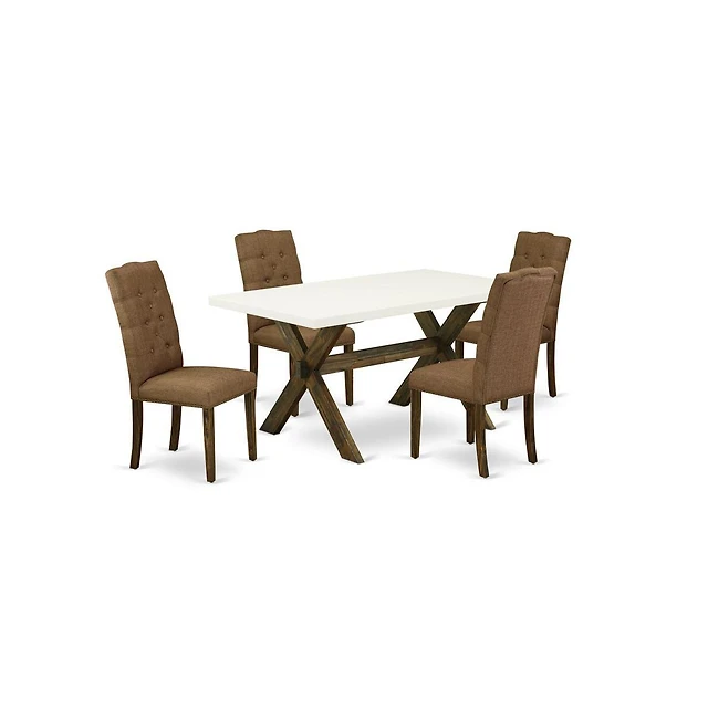 East West Furniture 5-Piece Gorgeous Dining Room Set an Outstanding Distressed Jacobean Modern Dining Table Top and 4 Stunning Linen Fabric Kitchen Pa
