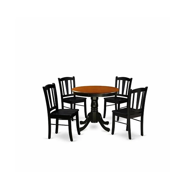 East West Furniture 5-Pc Dining Table Set- 4 Upholstered Dining Chairs with Black Linen Fabric Seat and Stylish Chair Back