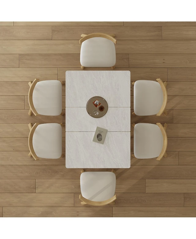 Streamdale Furniture Marble Dining Table for 6 People, 70" Faux Marble & Stainless Steel Base Silver, White