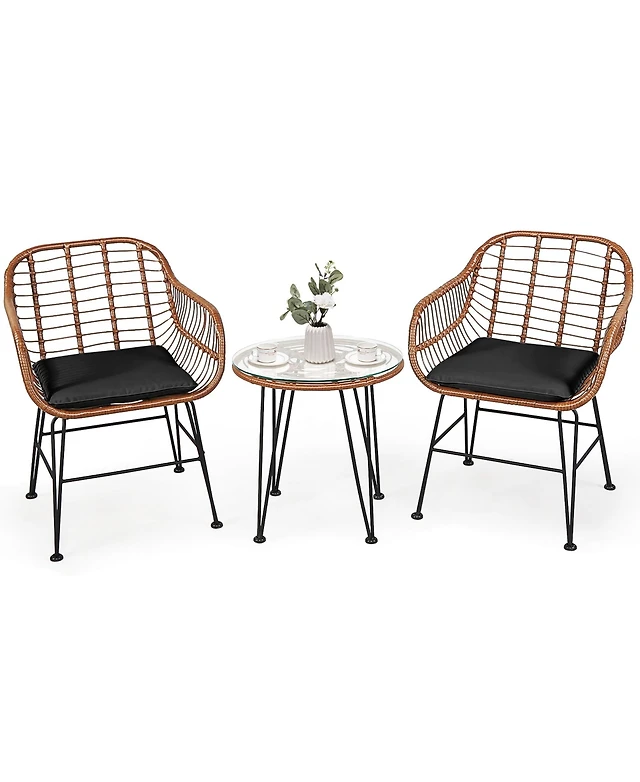 3PCS Patio Rattan Bistro Set Coffee Table Armchair Garden