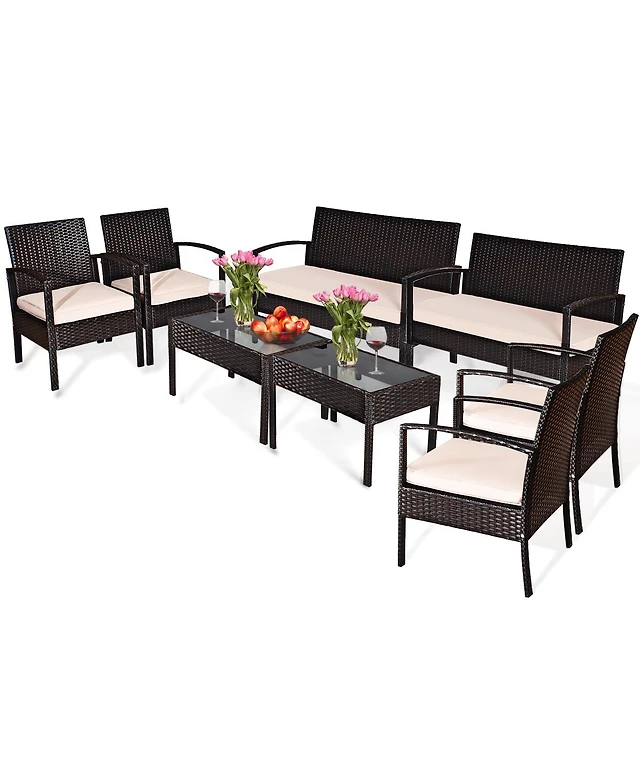 Sugift Wooden Coffee Table Set of Two with Metal Legs