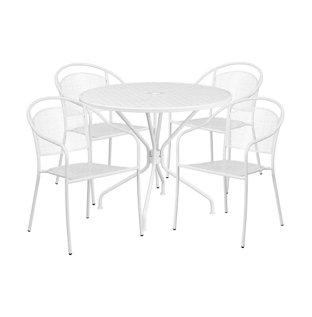 5-Piece Outdoor Metal Frame Dining Table Patio Set with Stackable Chairs