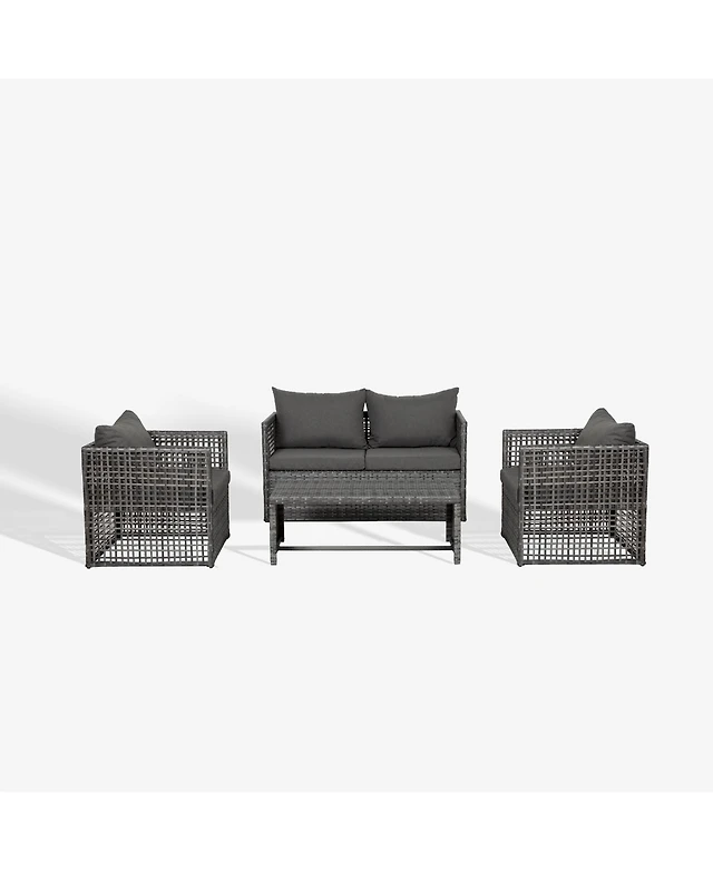 Gymax Set of 2 Pe Wicker Furniture Set Loveseat w/ Acacia Wood Coffee Table Patio