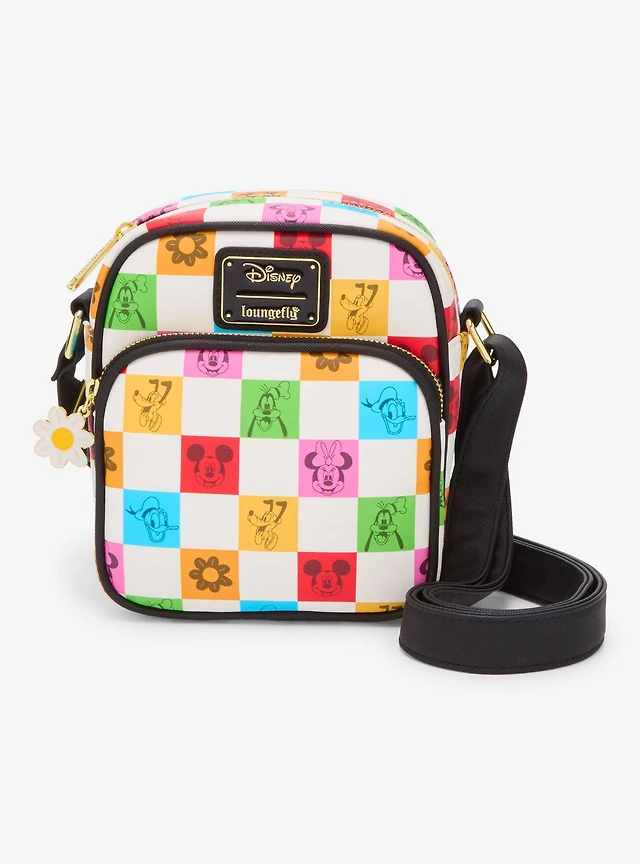 Loungefly Disney Mickey Mouse & Friends Floral Checkered Crossbody Bag - BoxLunch Exclusive