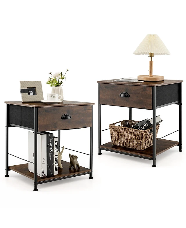 Gouun 2 Pieces Nightstand Sofa Table with Storage Shelf