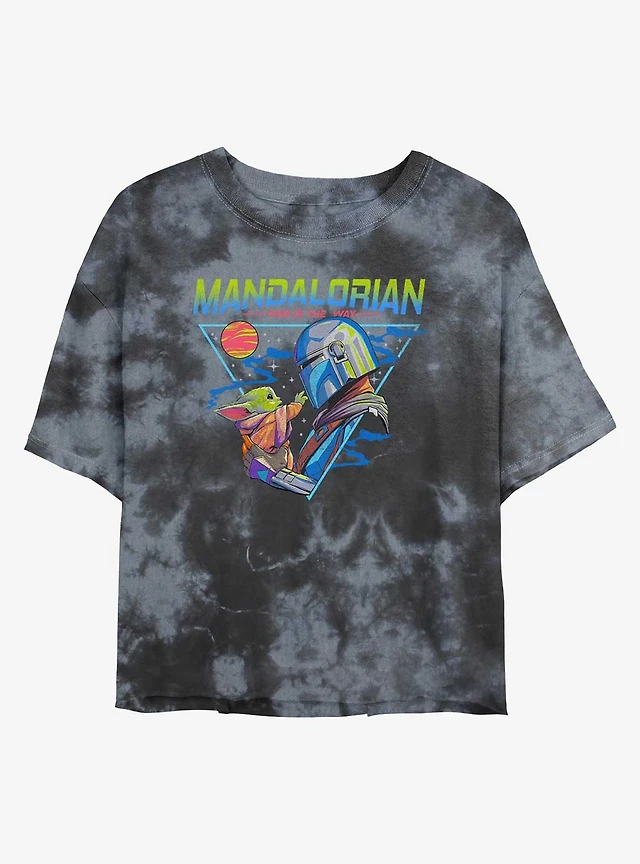 Star Wars The Mandalorian Grogu and Din Djarin Triangle Tie-Dye Girls Crop T-Shirt
