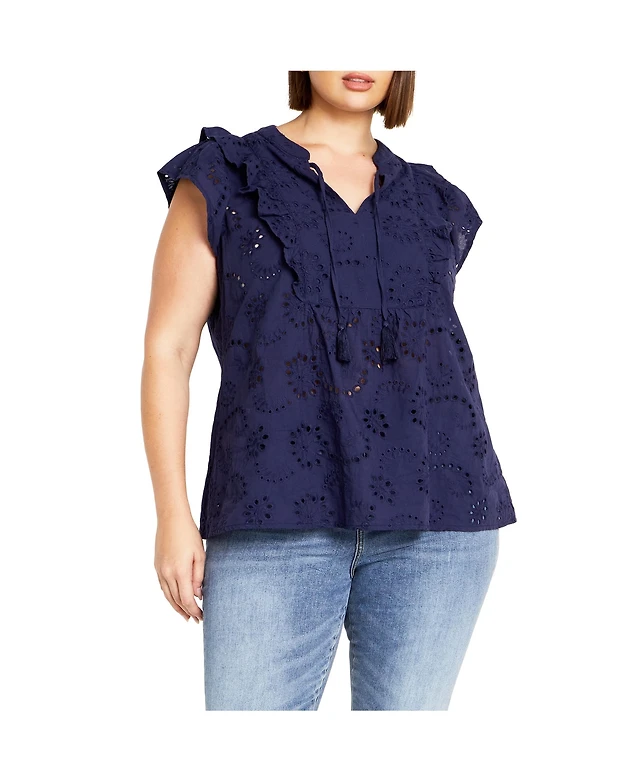 Alfred Dunner Plus Hilton Head Blanket Stitch Trim Button-Front Top