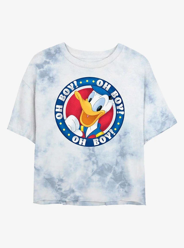 Disney Donald Duck Oh Boy Badge Tie-Dye Girls Crop T-Shirt