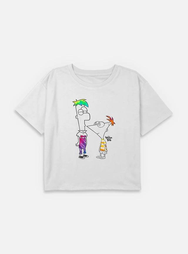 Disney Phineas and Ferb Boys Of Tie-Dye Youth Girls Boxy T-Shirt