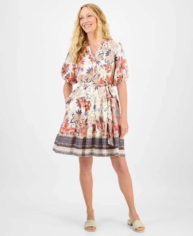 Lauren Ralph Petite Floral Print Tie-Front Shirt Dress