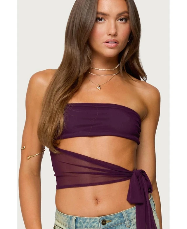 Ivonne Women's Long Sleeve Top with Crossed Tie Straps