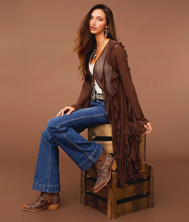 Ruffle Mesh Duster Cardigan