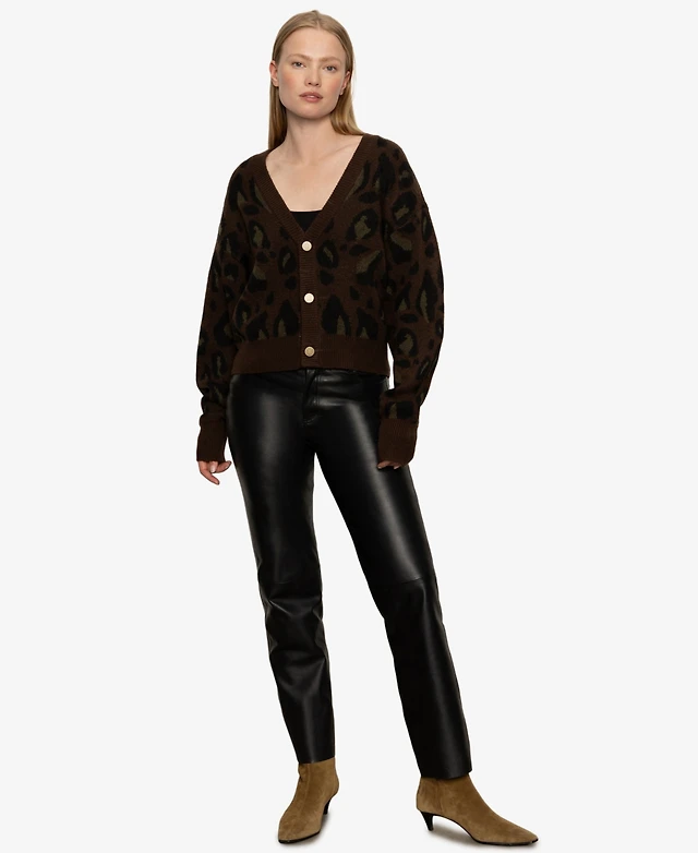 June + Vie Women's Leopard-Print Eyelash Cardigan