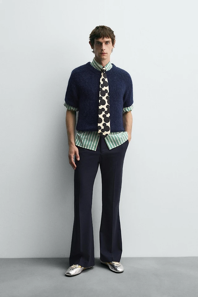 Paisley & Gray Men's Slim Fit Short Sleeve Striped Crochet Cardigan Sweater
