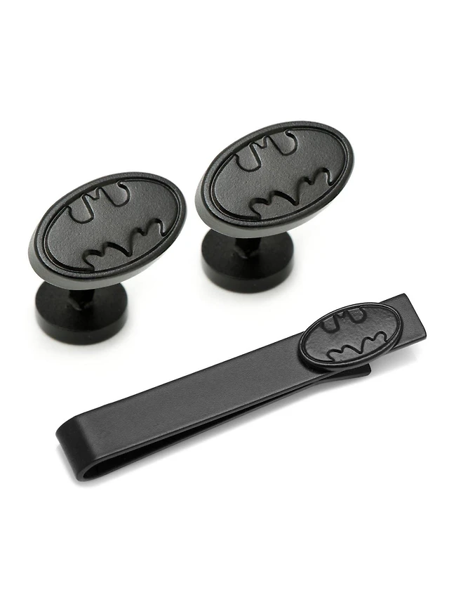 DC Comics Batman Satin Black Cufflinks and Tie Bar Set