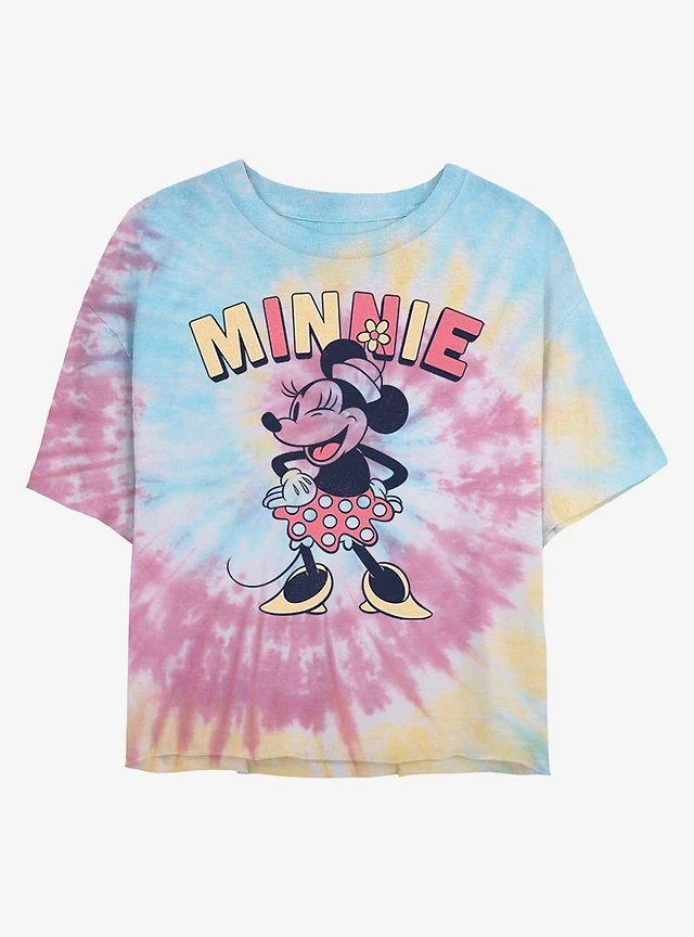 Disney Minnie Mouse Polka Dot Skirt Tie-Dye Girls Crop T-Shirt