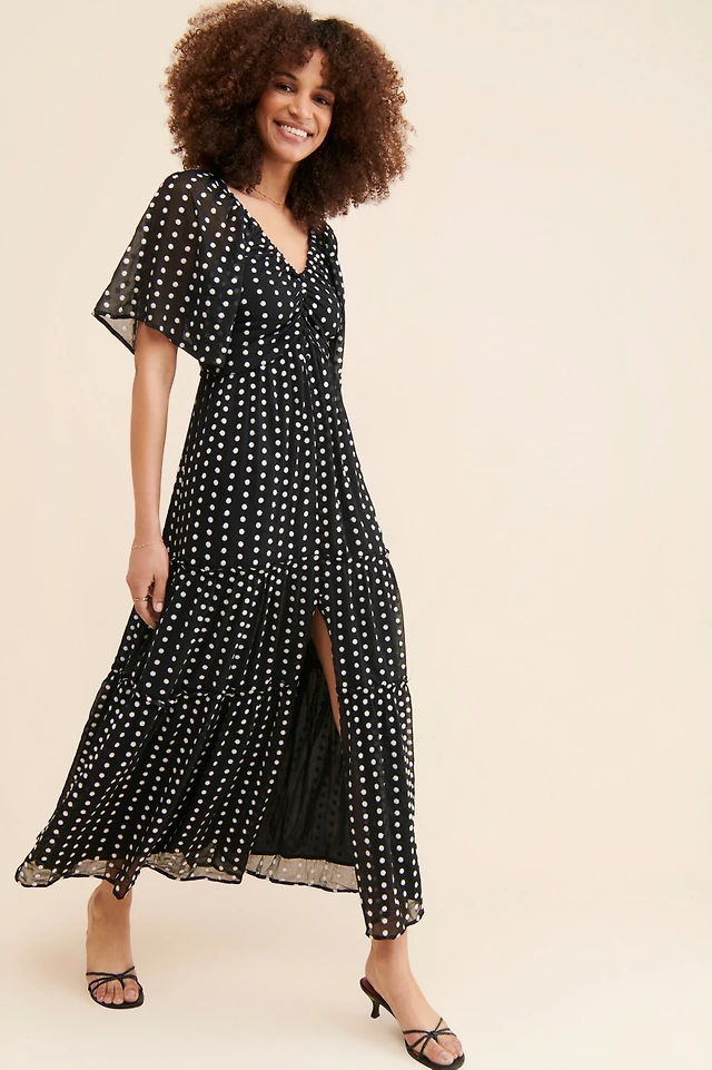 Ann Taylor Floral Linen Blend Midi Dress Size 6 Black Women's
