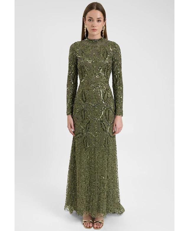 Miss Circle Women's Quinci Apricot Beaded Sequin Sweetheart Maxi Dress