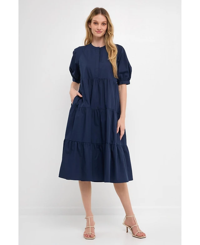 Jessica Howard Women's Crewneck Balloon-Sleeve Midi Dress