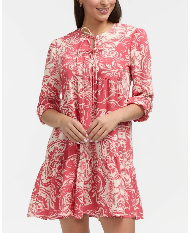 CeCe Women's 3/4-Sleeve Tiered Mini Dress